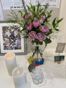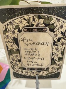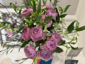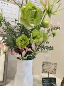 霜の感じはこのグリーンからもきていますね。白っぽい、銀っぽい緑がこれまた素敵。ユーカリは2種類使ってあって、パルブラ(ツンツンの方)とポポラス(まあるい方)が全体をまとめてくれています。