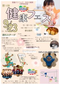 9月23日にもみじ薬局さんと合同で小さなお祭りをします。健康について考えてみようと思っていただけたり、楽しんでいただければいいなと思って開催します。ご興味があればお立ち寄りください。素敵な仲間たちが参加して盛り上げてくれます。