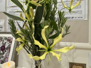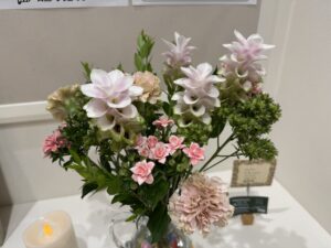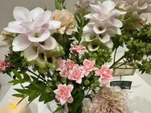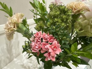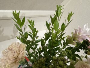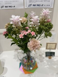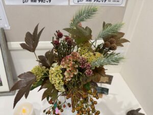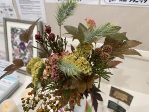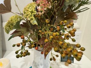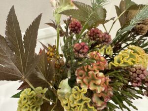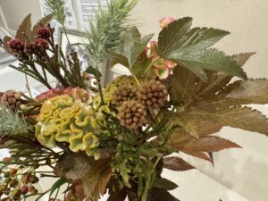 ケイトウの色が微妙なグラデーションを成していて、とても素敵ですよね。一つ一つは鮮やかなのに、落ち着いた色合いでハーモニーを作っています。
